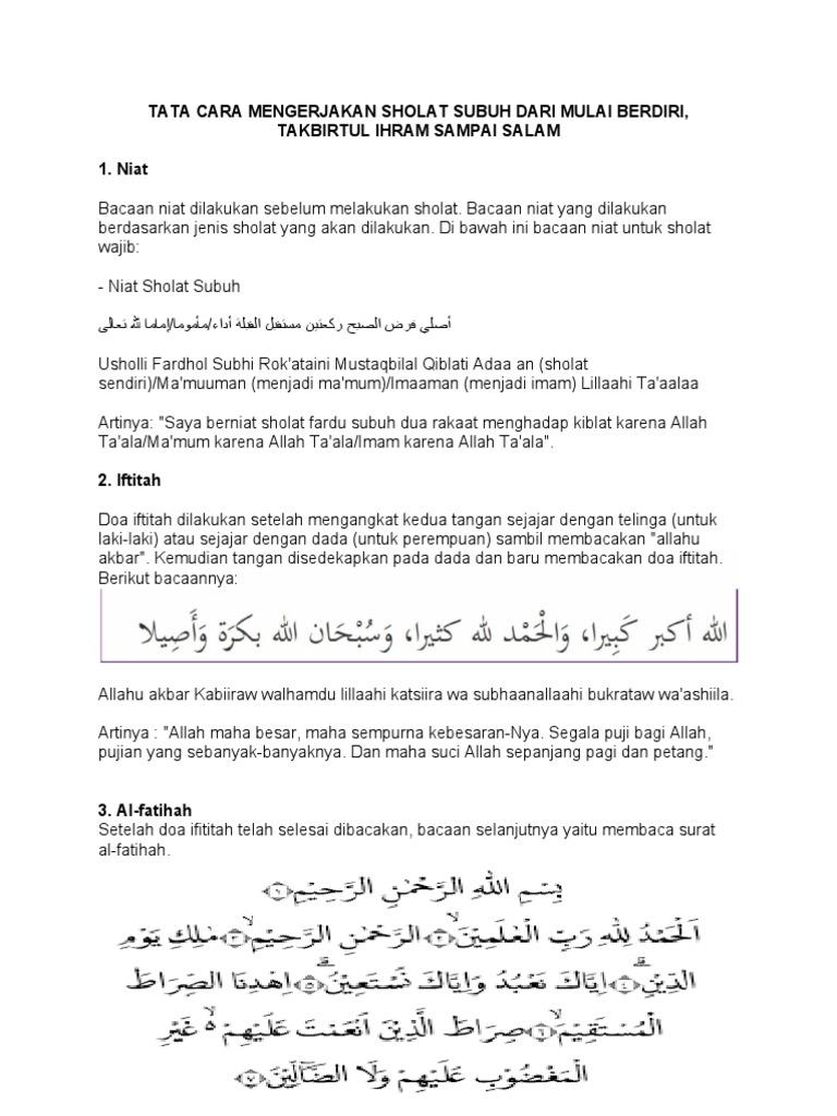 Tata Cara Mengerjakan Sholat Subuh Dari Mulai Berdiri Pdf