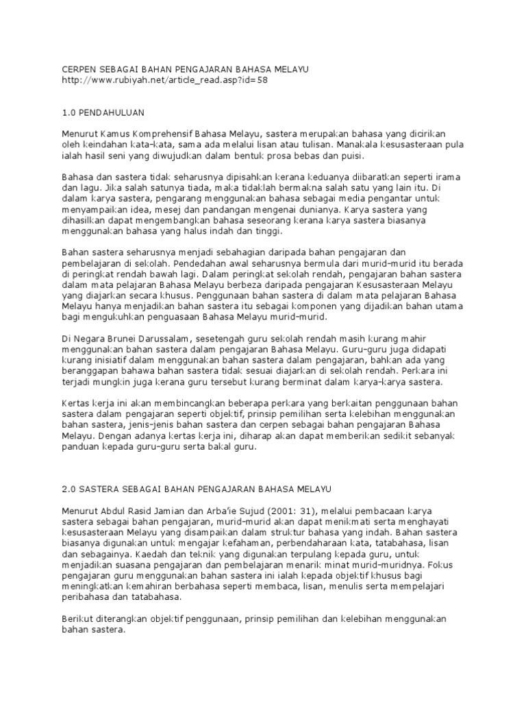 Cerpen Sebagai Bahan Pengajaran Bahasa Melayu Pdf