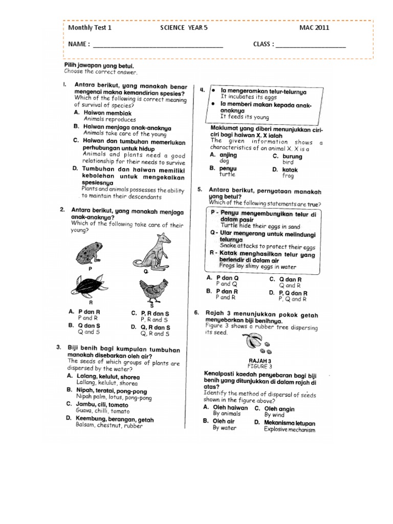 All living things are created by God. Koleksi Soalan Ujian Mac Tahun 5 K. Science standard 5 1.